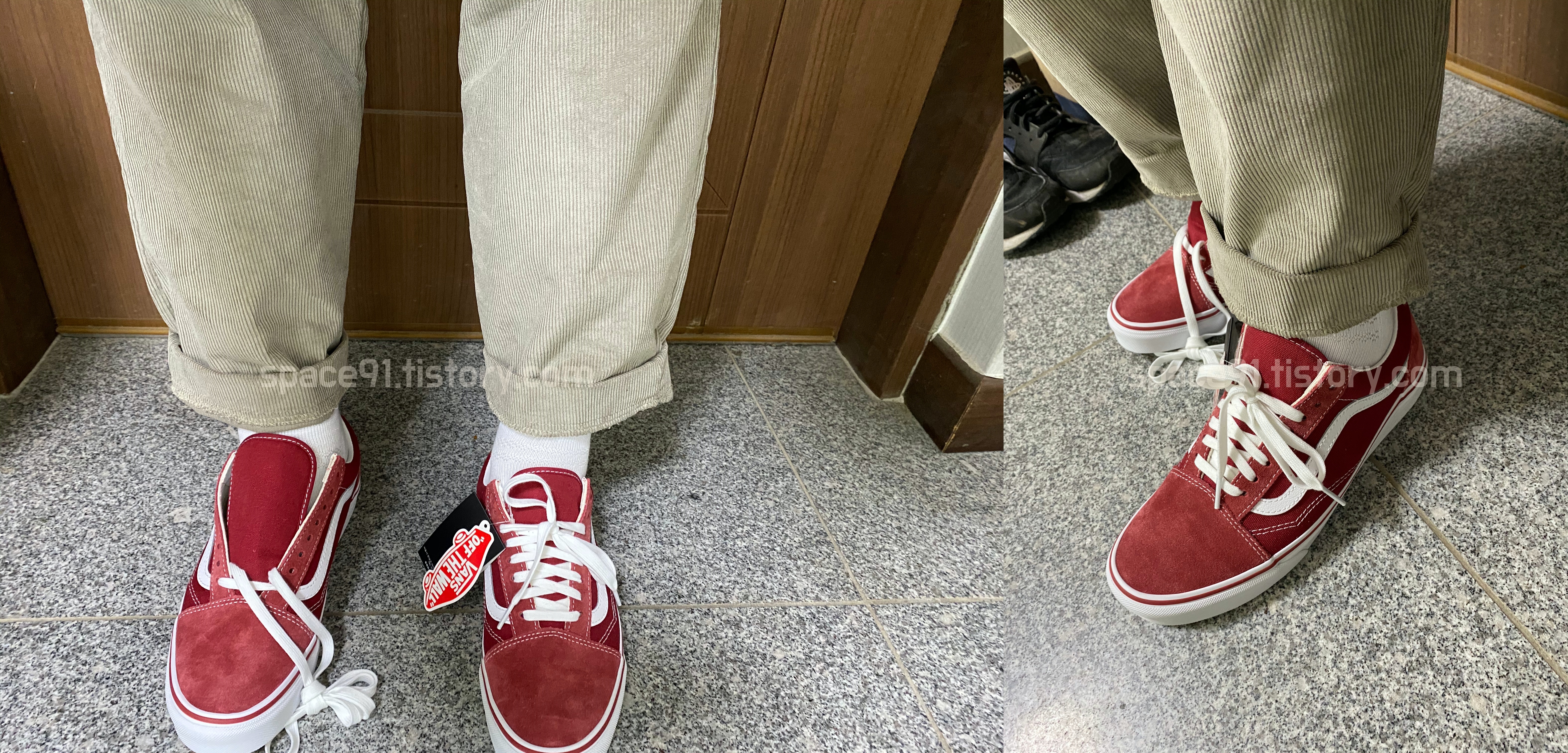 반스 올드스쿨에 대해서 따로 설명드릴 필요는 없을 것 같고, 가장 인기있는 모델은 아마 블랙 색상이지 않을까 싶습니다. 저는 레드컬러가 할인하길래 구매를 고려했었는데, 색상이 괜찮을지 고민을 많이 하게 되었습니다. 결과적으로는 정말 만족스럽게 신고 있습니다.